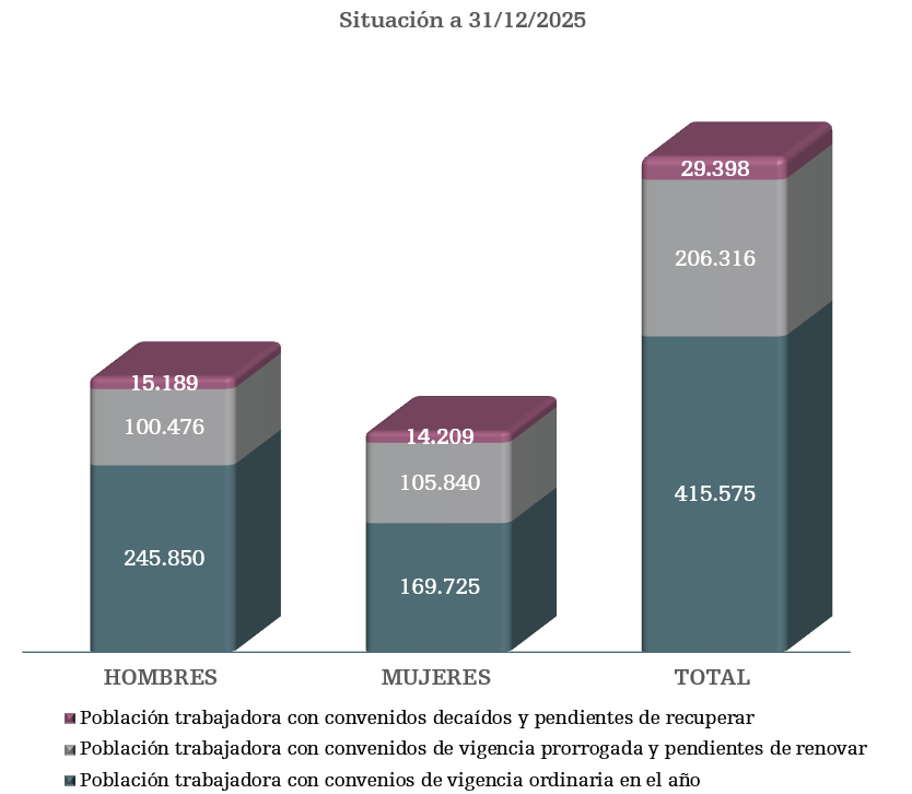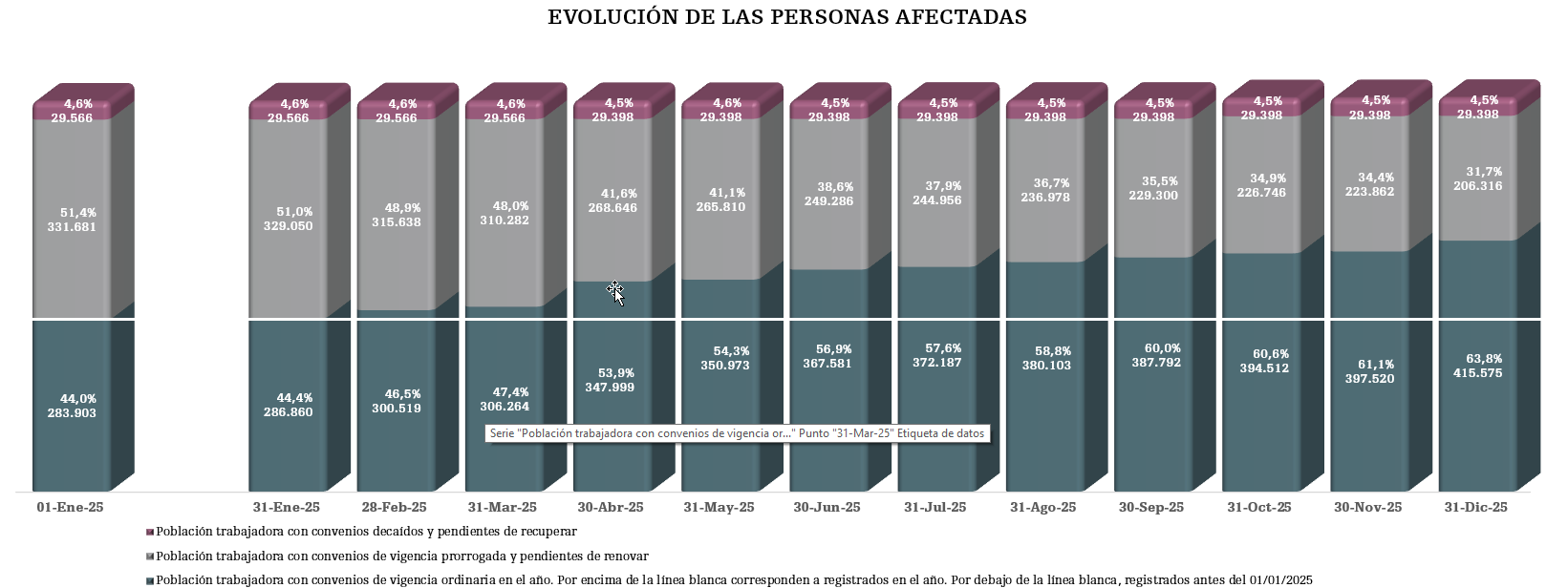 Jornada Laboral pactada en los convenios vigentes a 31 de diciembre de 2025